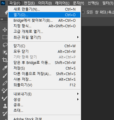 포토샵에서 이미지 열기