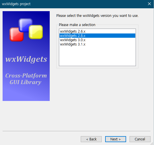 wxWisgets 라이브러리 버전에 맞게 선택.