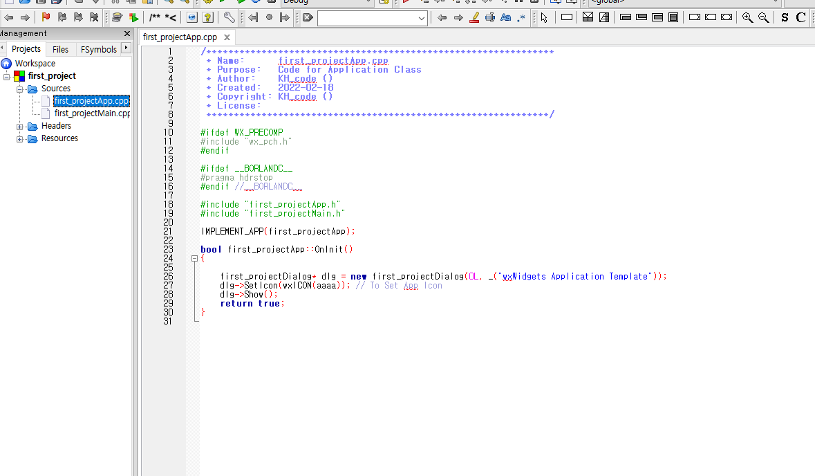 Code::Blocks에서 왼쪽 사이드를 살펴보면 Source, Header file과 Resource 파일이 나와있습니다.