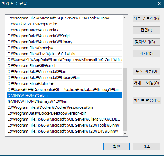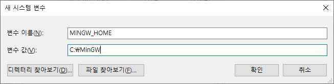 변수 이름 : MINGW_HOME