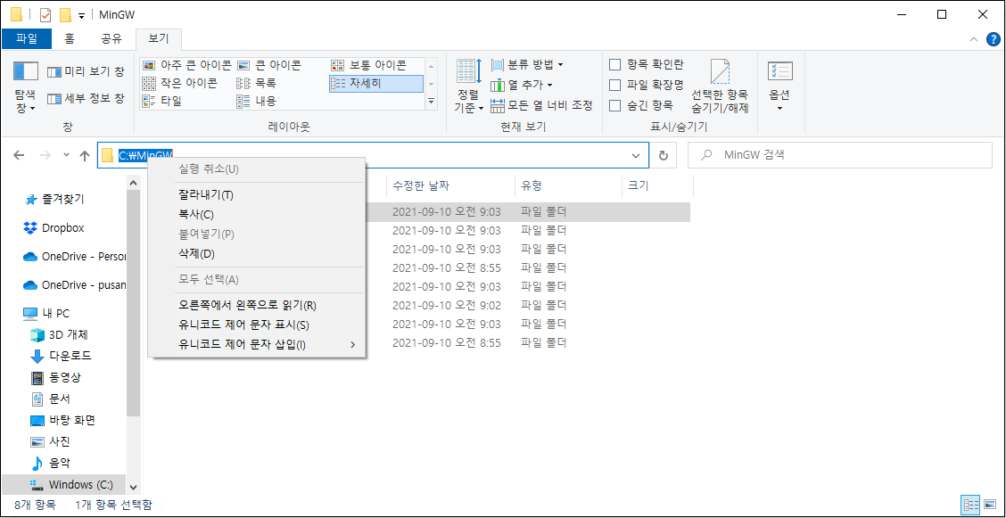 주소 표시줄 MinGW 설치경로 복사.