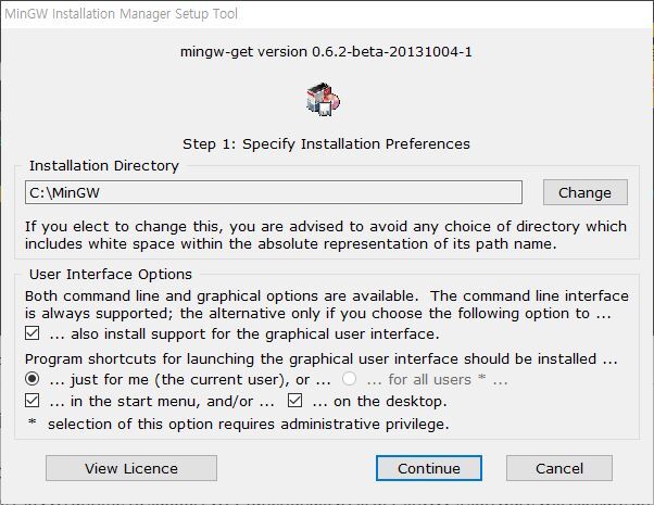 MinGW를 설치.