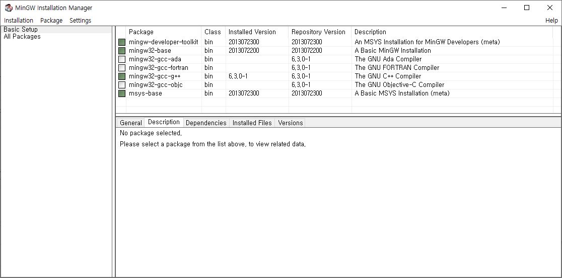 다음 위치에서 MinGW를 다운로드한다.