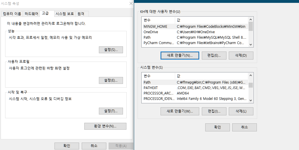 "환경변수"로 이동!