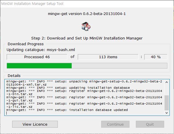 다운로드 완료 시 mingw-get-setup.exe 실행.