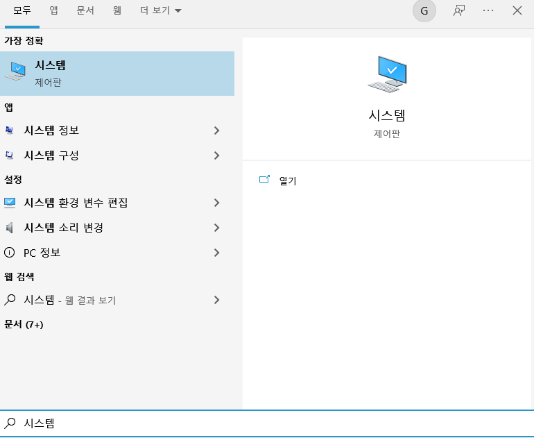 1. 우선 검색 돋보기에서 시스템으로 들어갑니다.
