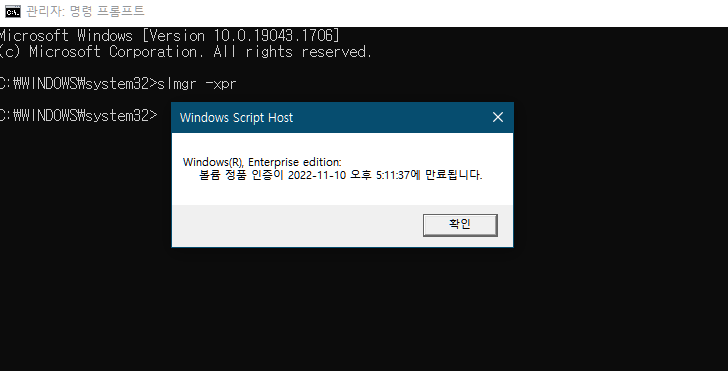 7. slmgr /ato 입력하시면 정품인증 완료입니다.