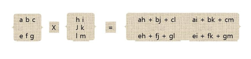 행렬의 곱셈은 크기가 맞는 경우만 가능하다. 크기가 맞다는 것은 앞 행렬의 열의 수와 뒤 행렬의 행의 수가 같다는 거다.