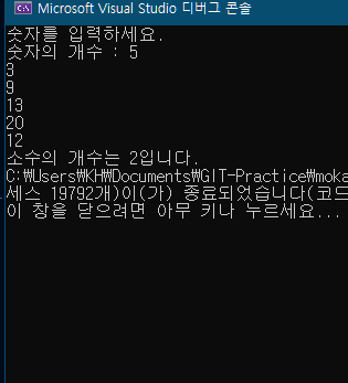 소수의 개수는 2입니다.