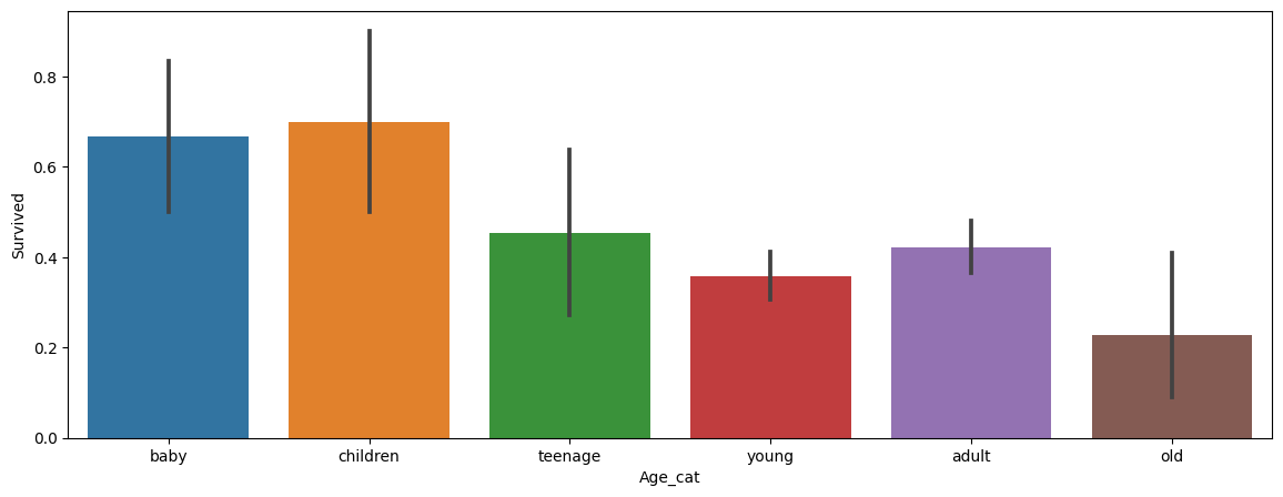 # 바 그래프 그리기 (x축 = Age_cat, y축 = Survived)