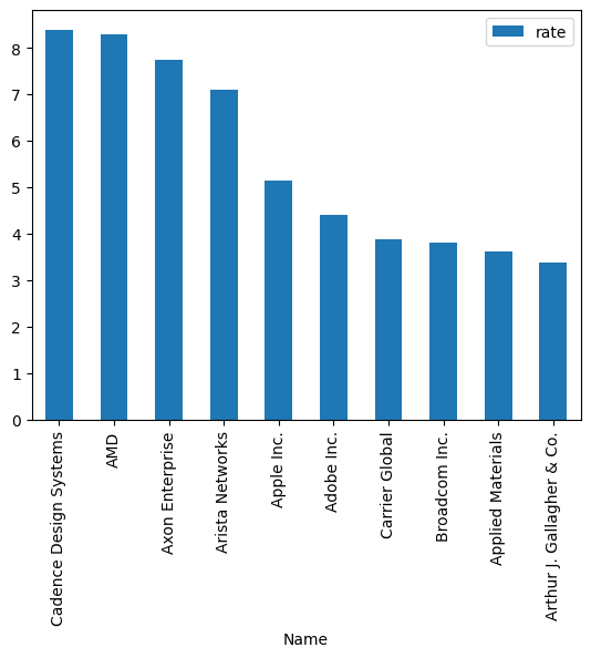 df = df.sort_values(by='rate', ascending=False).head(10)