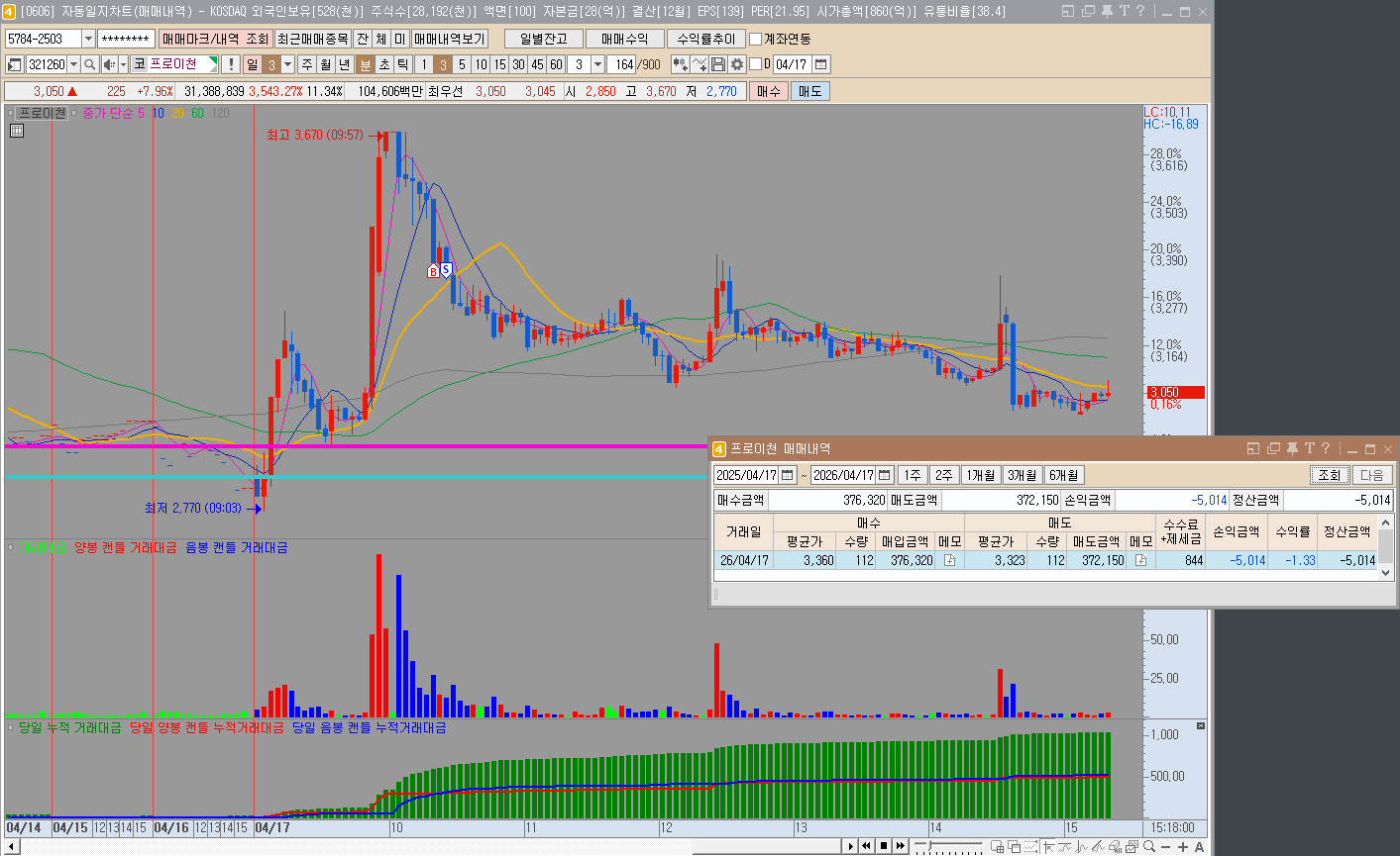 평균가 : 3,360원 매수