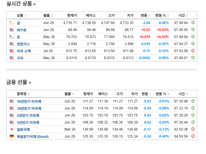 미국 선물지수는 약 상승중....