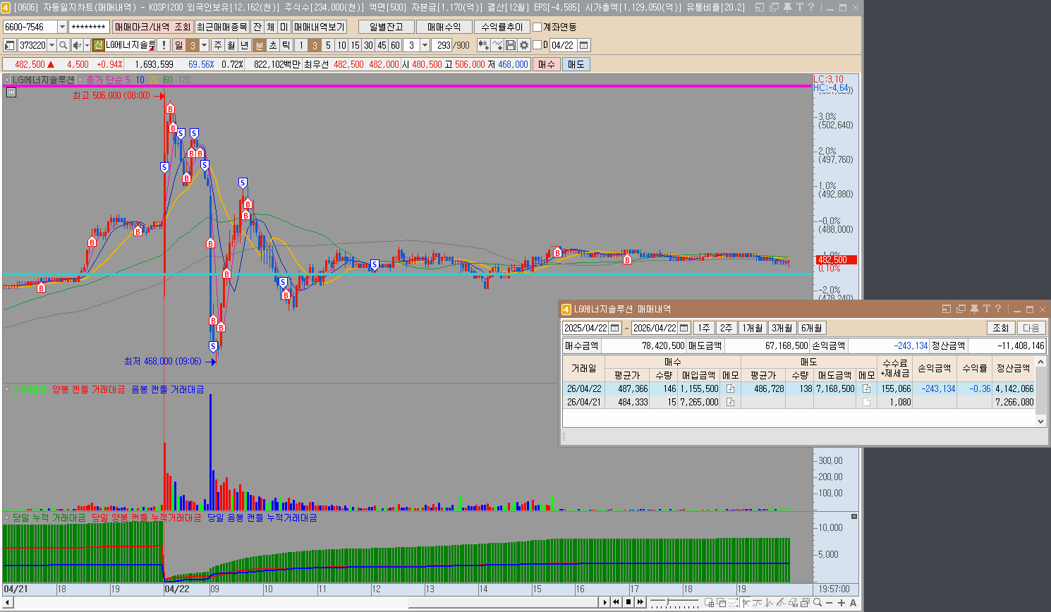 이종목은 복구심리로 선택한 종목이다. 내 시드로 할수있고, 거래대금 많고 해서 선택해서 일부 복구함....
